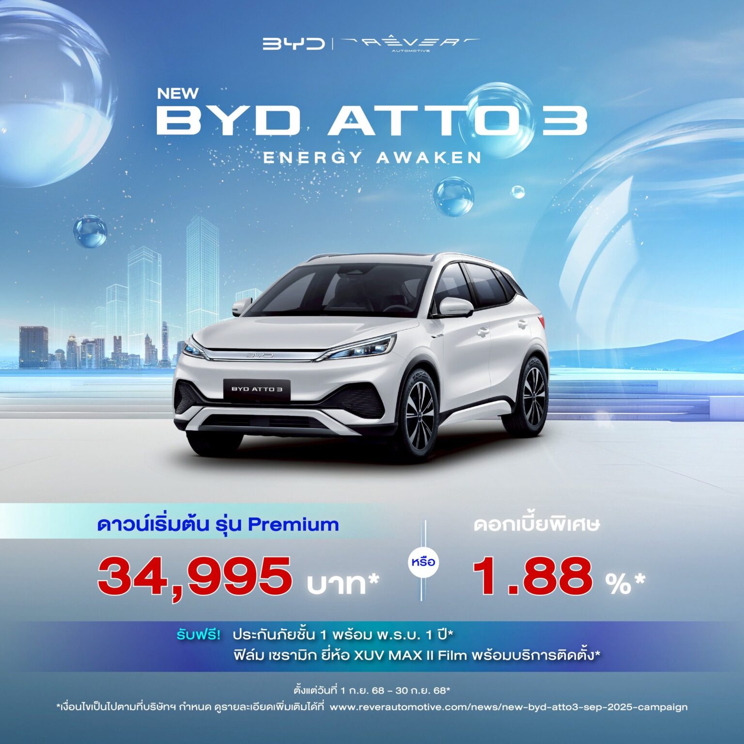 แคมเปญนี้จัดขึ้นเพื่อส่งเสริมการขายรถยนต์ไฟฟ้านิว บีวายดี แอตโต้ 3 เอ็มวาย 24 (NEW BYD ATTO 3 MY 24) รุ่น พรีเมียม ประกอบในประเทศไทย (“รุ่น Premium (Local Production)”) หรือ รุ่น เอ็กซ์เทนเดด ประกอบในประเทศไทย (“รุ่น Extended (Local Production)”) (เรียกรวมกันหรือแทนกันว่า “รถยนต์ไฟฟ้า NEW BYD ATTO 3 MY 24”) โดยลูกค้าสามารถเข้าร่วมแคมเปญได้ ตั้งแต่วันที่ 1 กันยายน 2568 จนถึงวันที่ 30 กันยายน 2568 (“ระยะเวลาของแคมเปญ”)